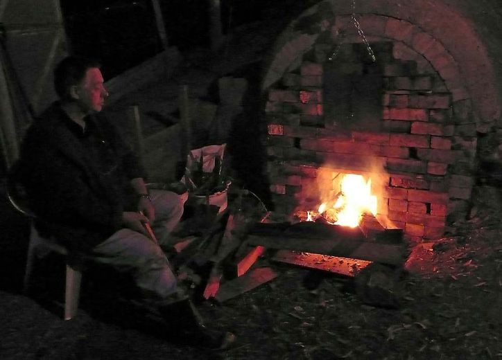 These early sessions are very peaceful, the only error you can make is haste, the fire burns quietly and the cavernous kiln sucks up the heat like a sponge. A leisurely firing process that leaves plenty of time for reading or chatting by the fireside.