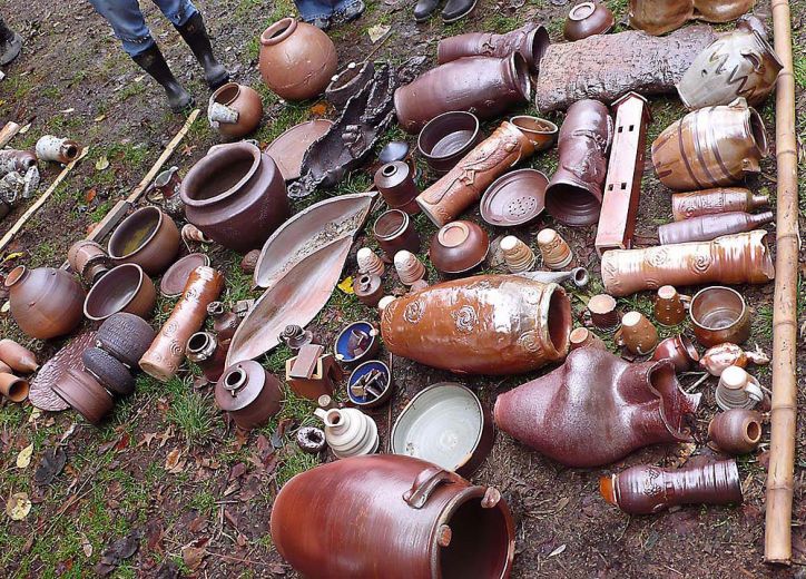 Unloading day dawns surprisingly warm and sunny, so unlike the rest of the weather we’ve faced during the firing. The wicket is taken down and the kiln is unloaded by a chain gang of willing and expectant hands, unluckily Charade’s hand was a casualty of a sharp shard. A swath of brown pots lying on the grass, guestimates at about 350 pieces in total, confronted everyone at the end of the unloading. Anthony and Lesley, guardians of the kiln, generously shouted us lunch and drinks to celebrate a successful firing. Everyone went home with treasurers and some disappointments – but that’s anagama firing.